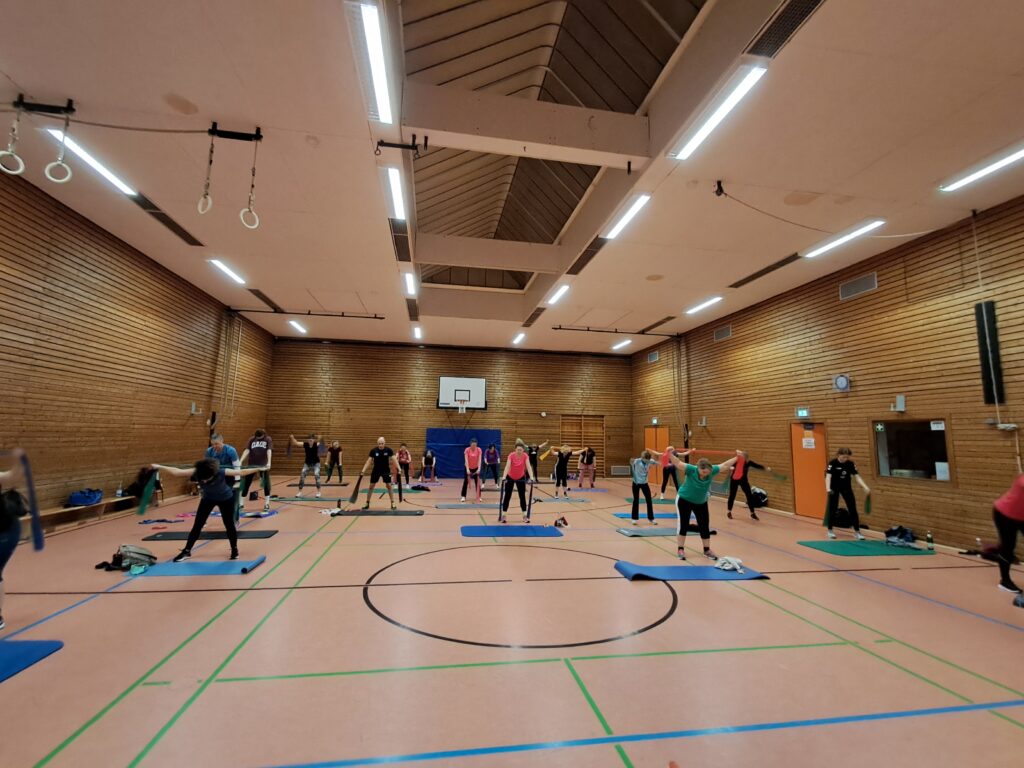 Gemeinsam trainieren wir verschiedene Muskelgruppen – sei es mit dem eigenen Körpergewicht oder mit Hanteln, Medizinbällen, Therabändern, Step Brettern und vielem mehr.